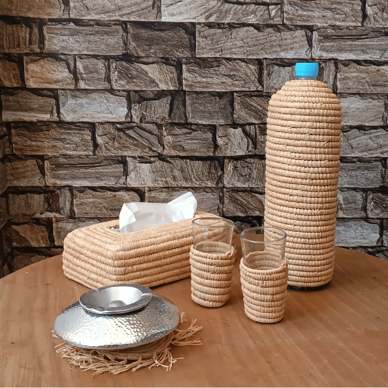 Each glass comes with a charming raffia cover, adding an extra layer of sophistication and protection. Easy to maintain and built to last, these Boho chic drinkware pieces are a must-have for anyone seeking a touch of Moroccan-inspired beauty in their lives. Whether you’re enjoying a relaxing cup of tea or hosting a gathering with friends, these glasses create a captivating ambiance that transports you to the vibrant streets of Marrakech.